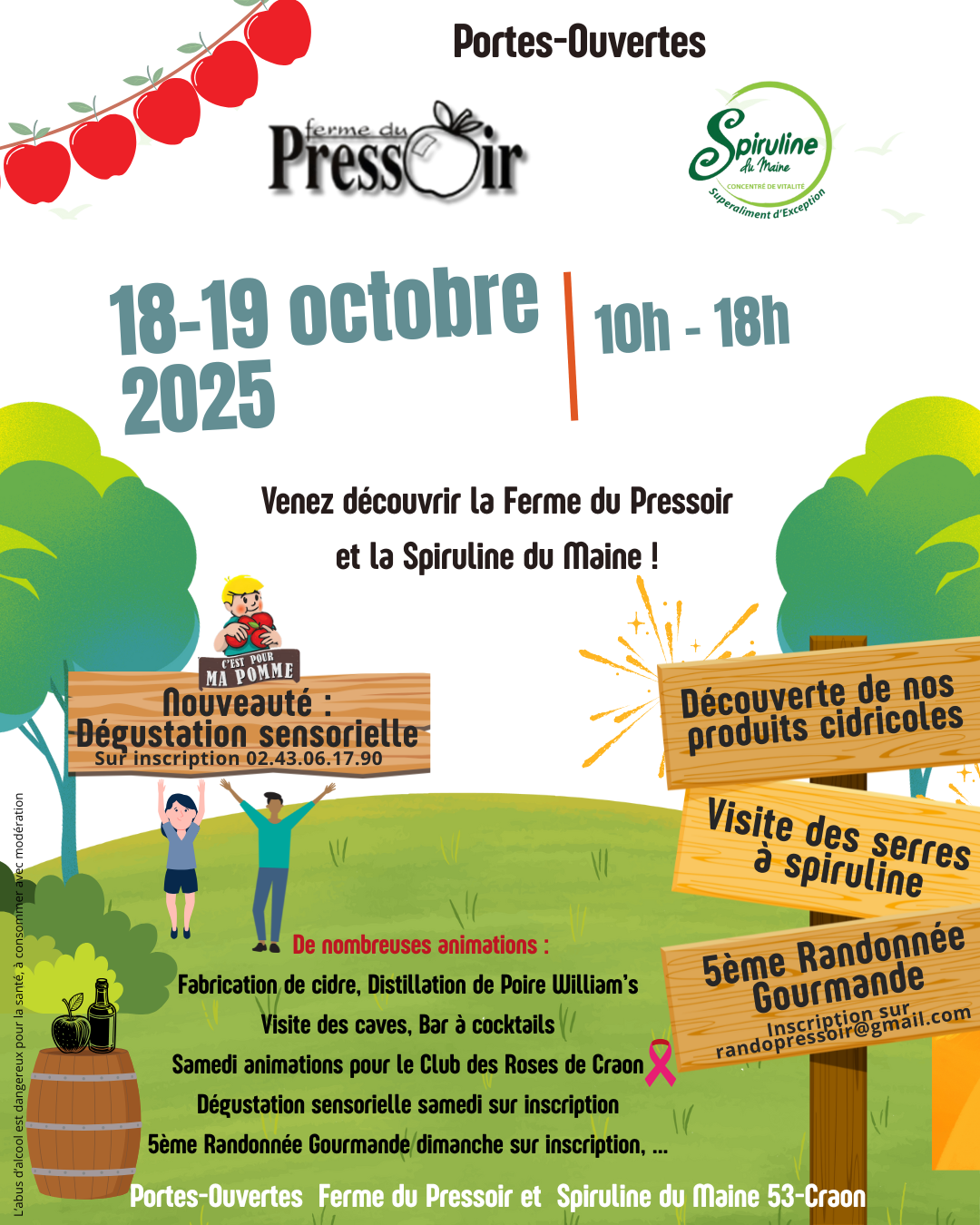 Venez découvrir la Spiruline du Maine et la Ferme du Pressoir lors de nos portes-ouvertes le samedi 18 et dimanche 19 octobre 2025